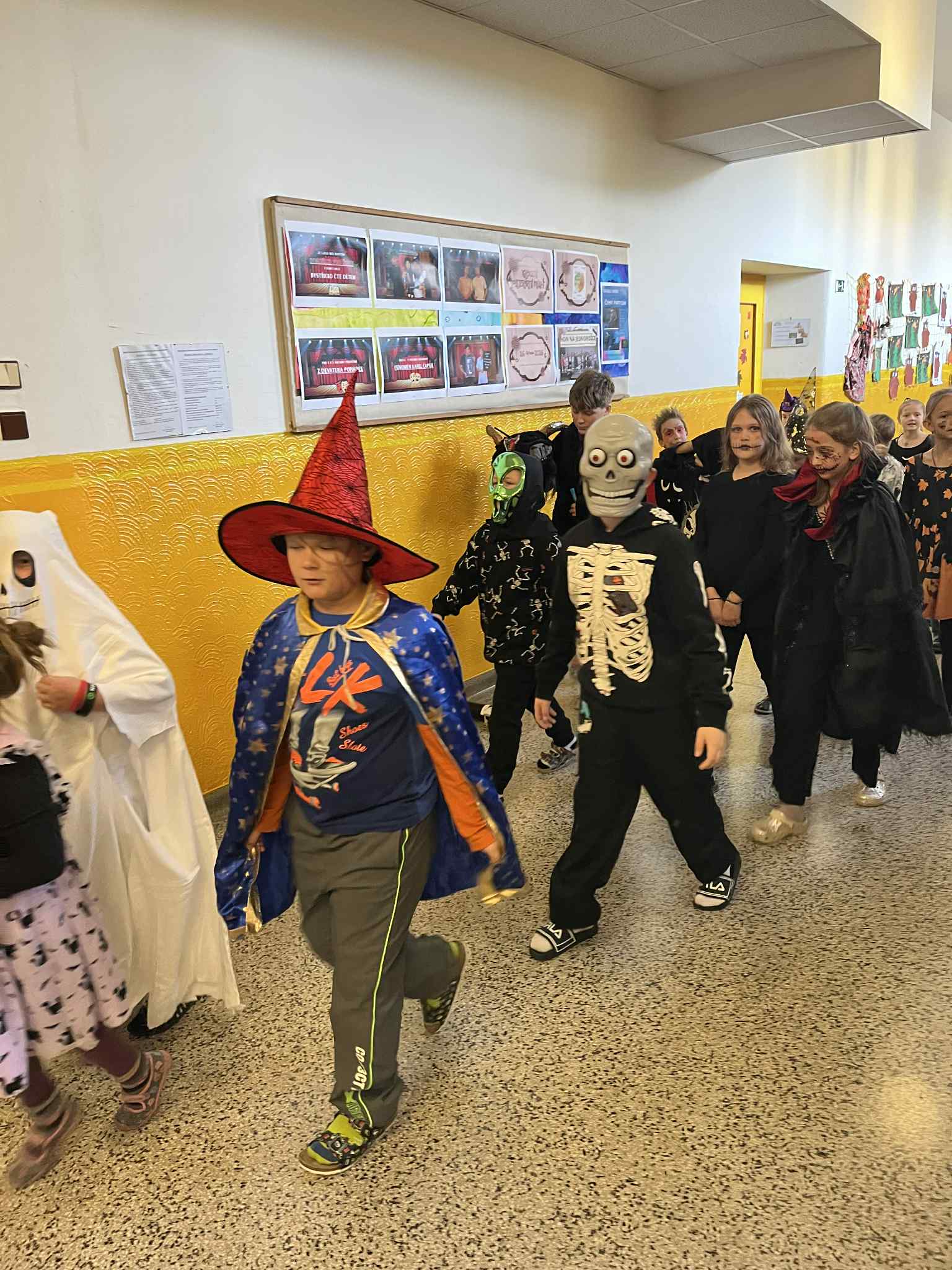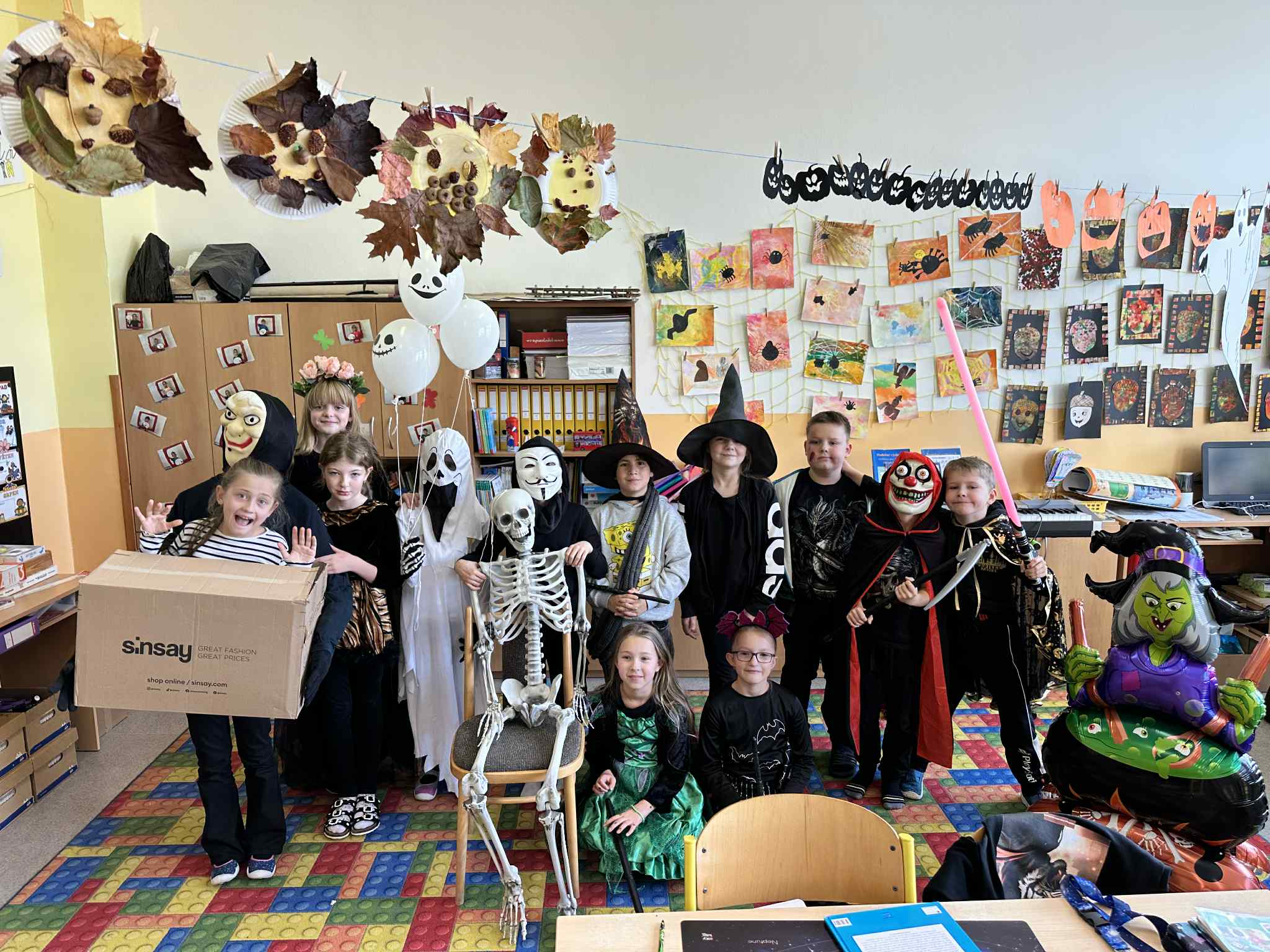 V pátek 31. října jsme si společně užili neobvyklý den - v poslední říjnový den - na Halloween -  přišla velká spousta našich žáků do školy v různých kostýmech. Fantazie a tvořivost dětí (a také velké řady rodičů) nám zpestřila běžné vyučování.