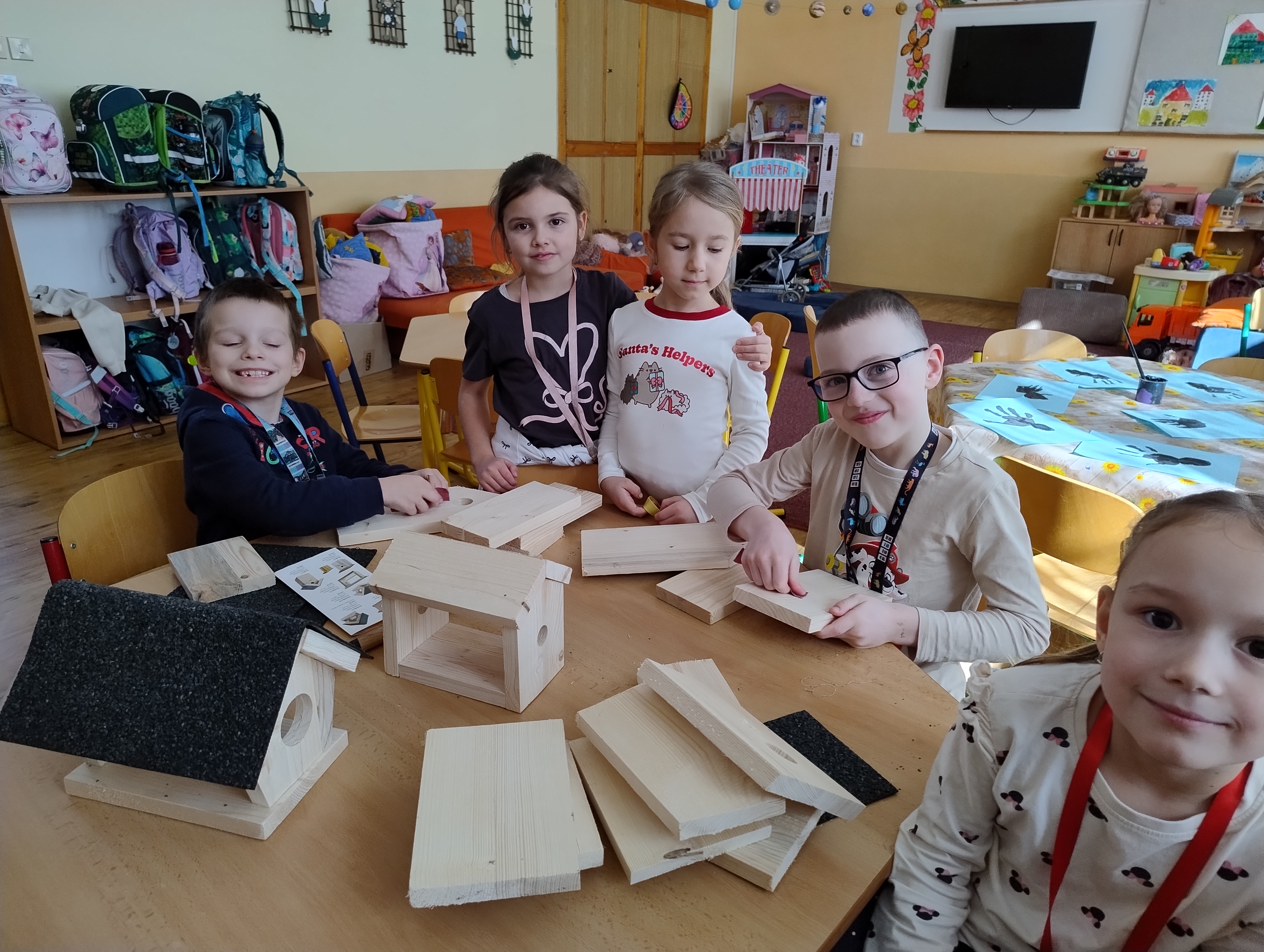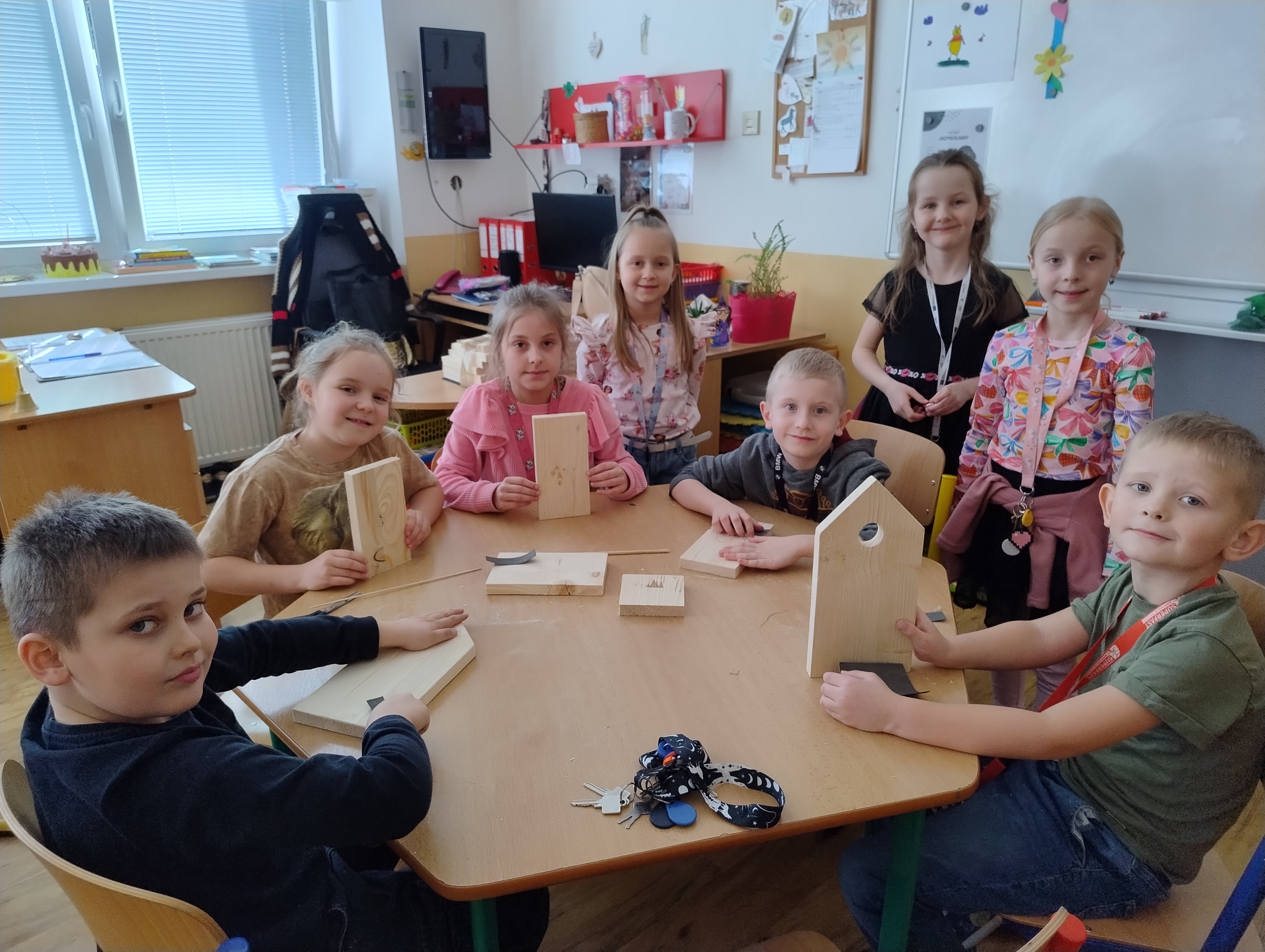 A proto jsme se tomuto tématu a našim pěvcům věnovali v družinách celý týden. Kromě jejich pozorování, různého tvoření a zpěvu jsme se pustili i do výroby krmítek a ptačích budek. Tak snad se některým ptáčkům bude nové bydlení v našem parku před školou líbit.