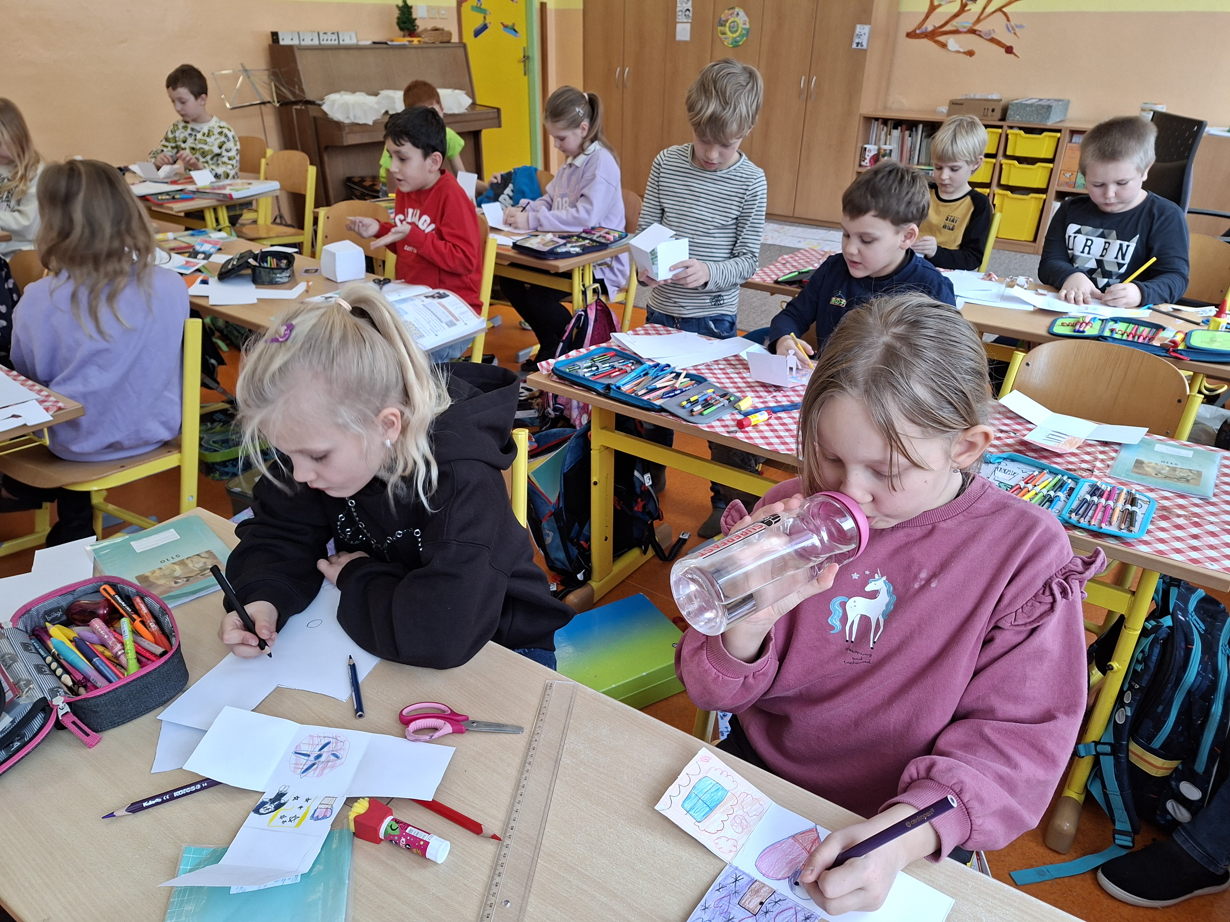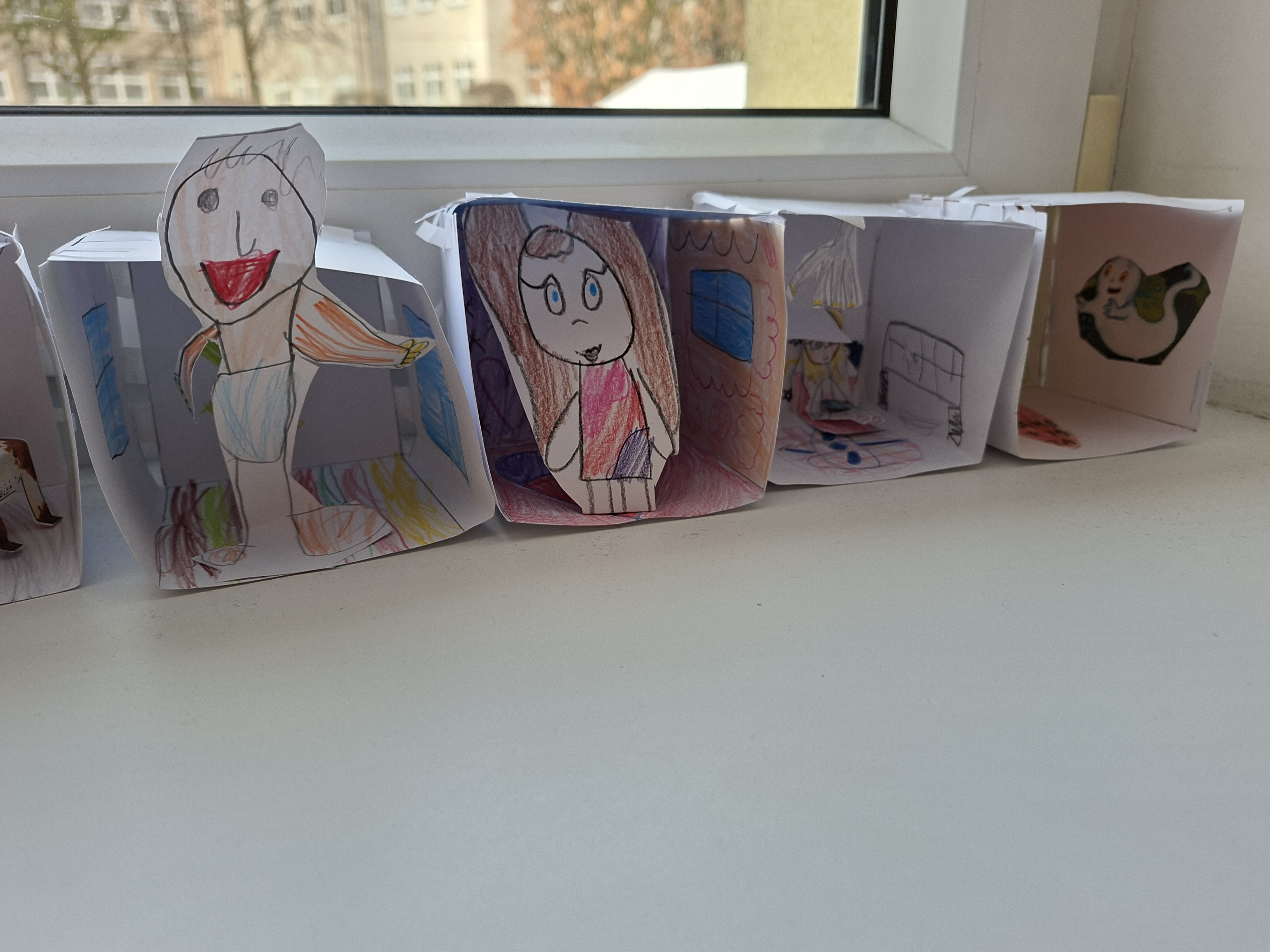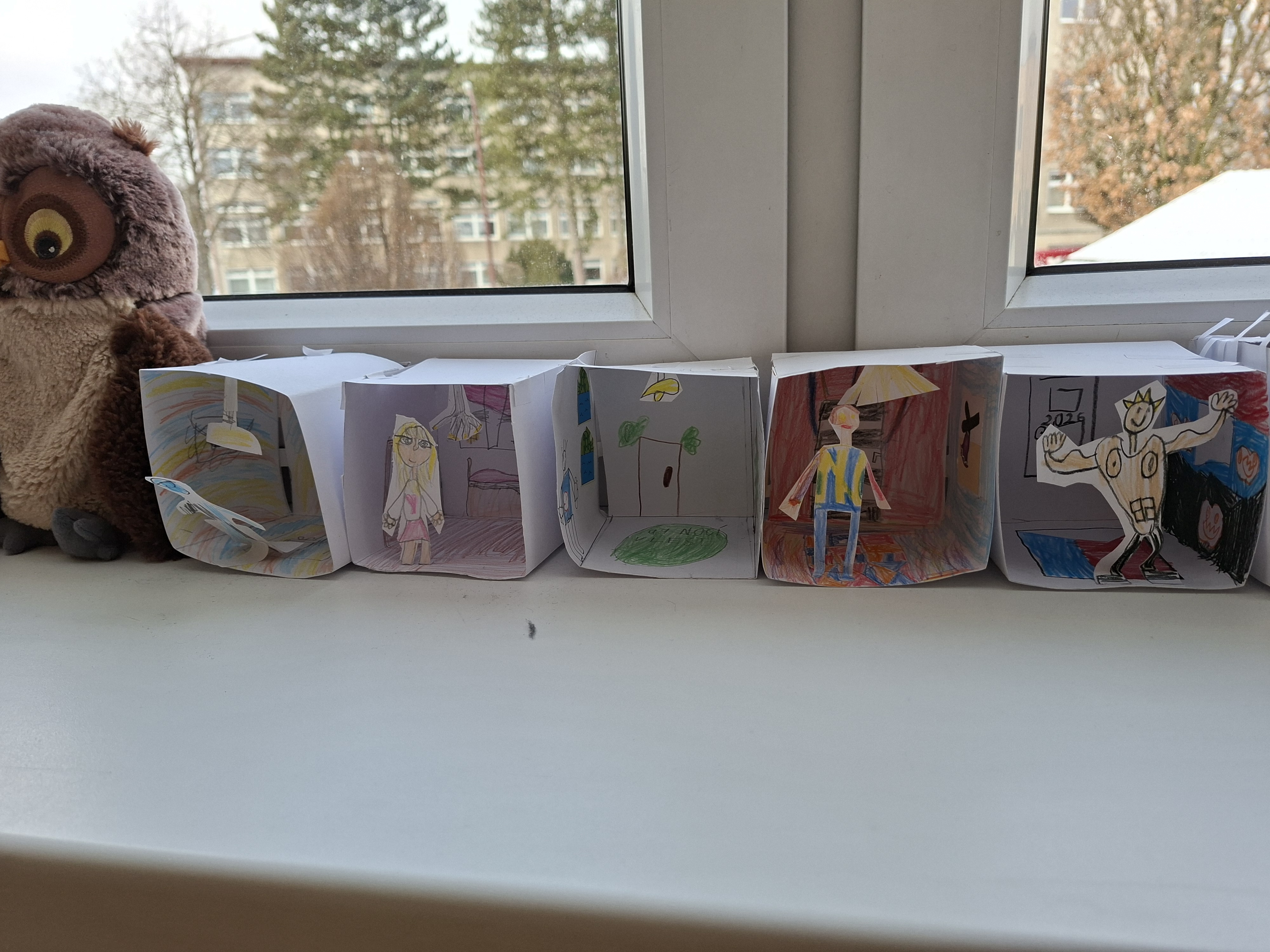 Nejprve jsme se seznámili s pojmem síť krychle a jak k sobě jednotlivé čtverce patří. Poté si každý vytvořil svůj vlastní pokojíček a dle vlastní představivosti si ho sám vybavil. Z papíru vyráběli nábytek a přidali také papírové postavičky. Každý pokojíček byl tak originální a odrážel osobnost každého tvůrce. Aktivita rozvíjela nejen prostorovou představivost a jemnou motoriku, ale také kreativitu, trpělivost a schopnost plánovat.Práce se dětem moc povedla a pokojíčky chvíli zdobily parapety naší třídy.
