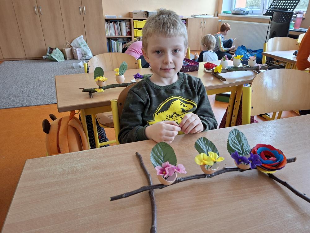 Nejprve jsme si povídali o tradicích spojených s Velikonocemi a o tom, jaké materiály můžeme najít v přírodě. Poté se s nadšením pustili do práce. Každý si mohl vytvořit originální dekoraci podle své vlastní fantazie. Vznikaly jarní aranžmá, ozdobené větvičky a drobné velikonoční ozdoby. Při práci jsme si procvičili jemnou motoriku, rozvíjeli svou kreativitu a učili se trpělivosti při manipulaci s pracovními nástroji. Výsledné dekorace se nám opravdu povedly.