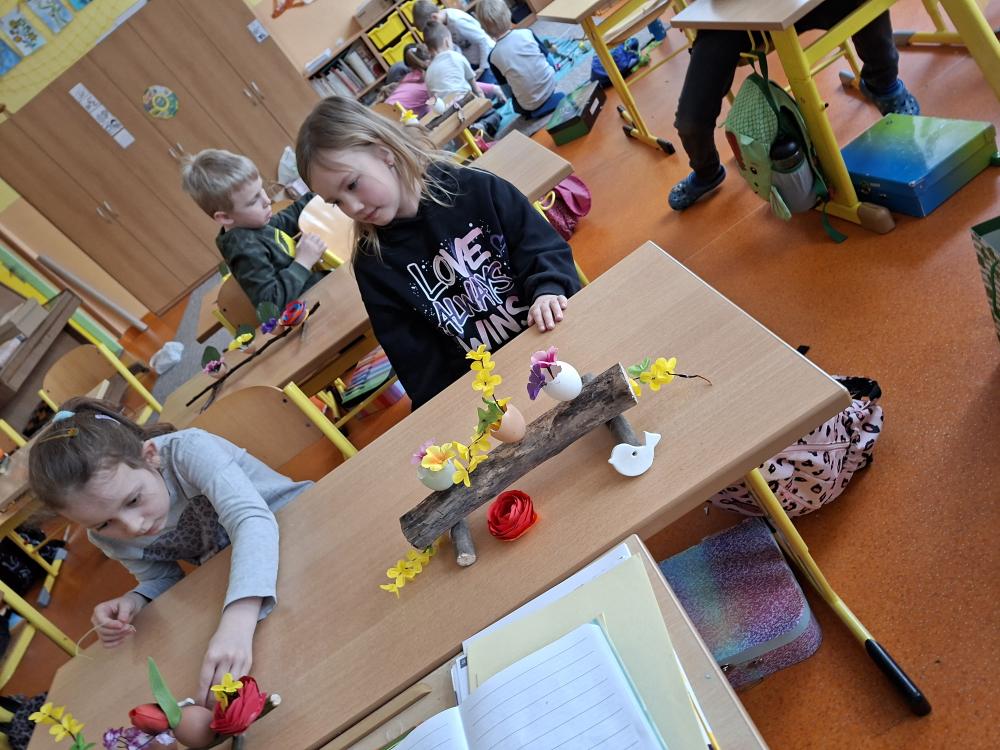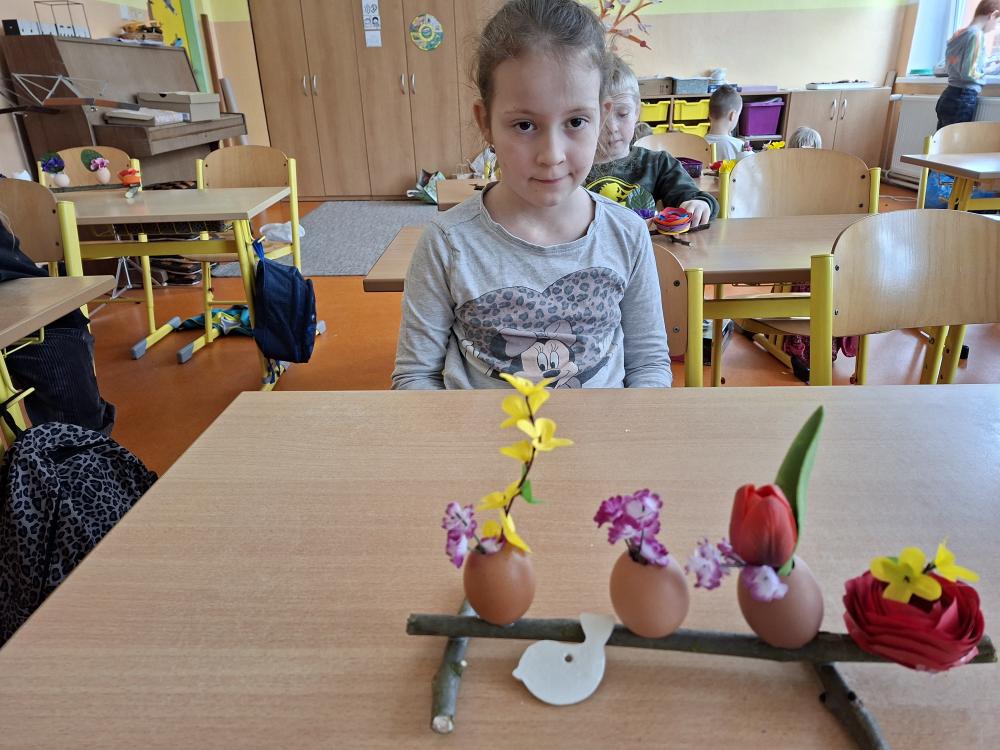 Čtvrteční projektový den před Velikonocemi jsme se pustili do tvoření krásných dekorací, které rozzáří nejen prostory naší třídy, ale i prostředí našich domovů. Pracovali jsme s přírodními materiály, které jsme kombinovali se dřevem, skořápkami od vajíček a vlastnoručně vyrobenými papírovými květinami.