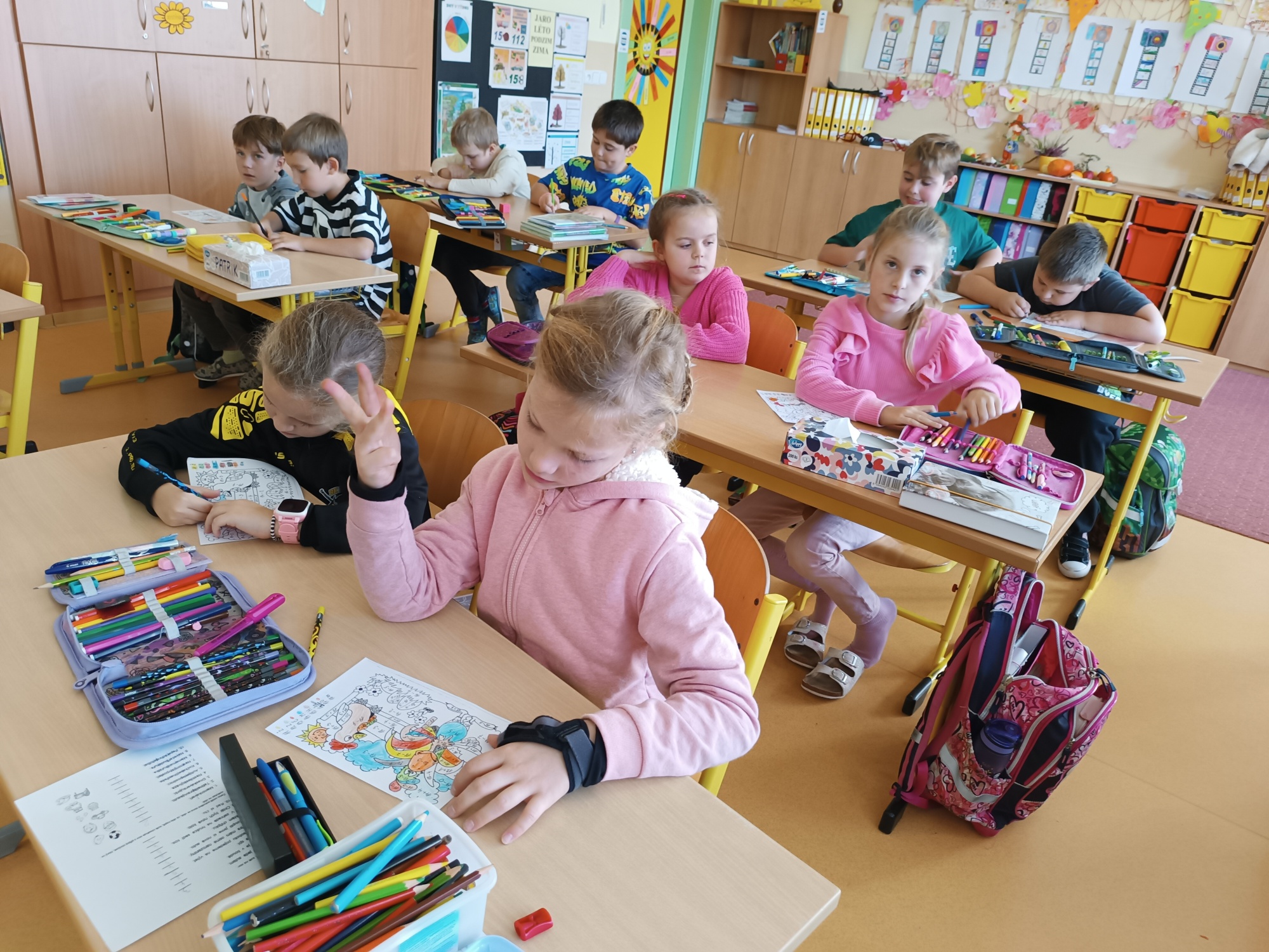 žákyně naší třídy, která žije a vzdělává se ve Francii. Děti se na ni moc těšily. Ona s námi pracovala v hodinách podle rozvrhu. Nejvíce času věnovala výuce českého jazyka. Zdokonalovala se ve čtení českých příběhů a určovala druhy vět. Povídala dětem o Francii, její škole a kamarádech.