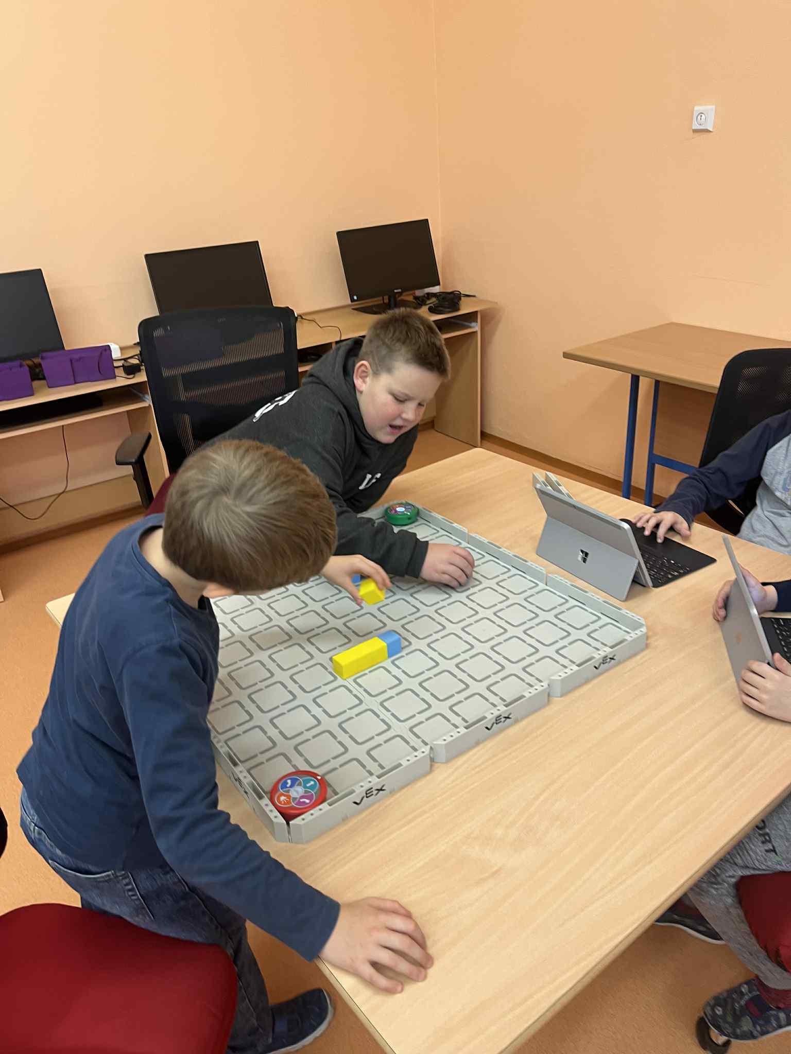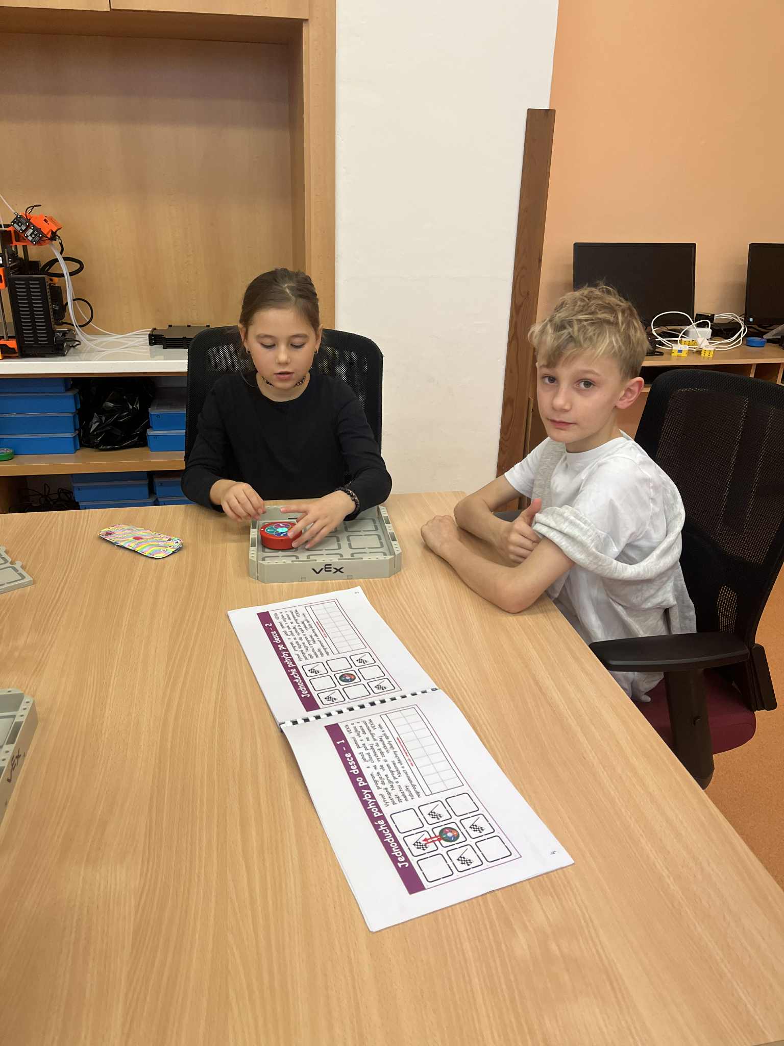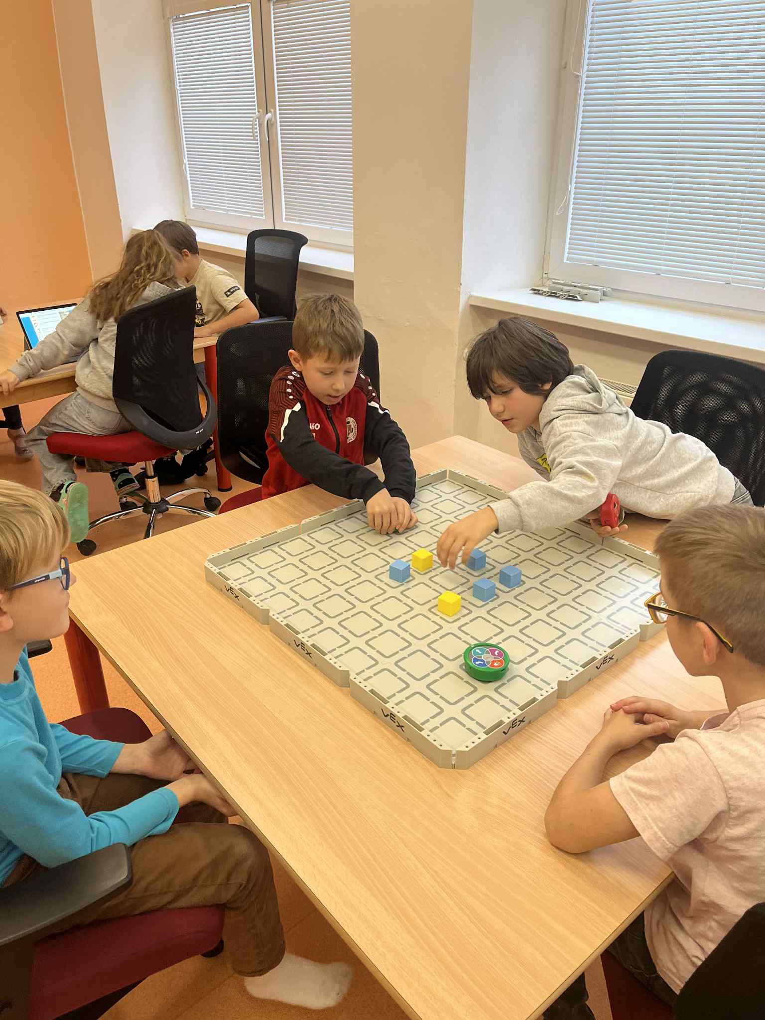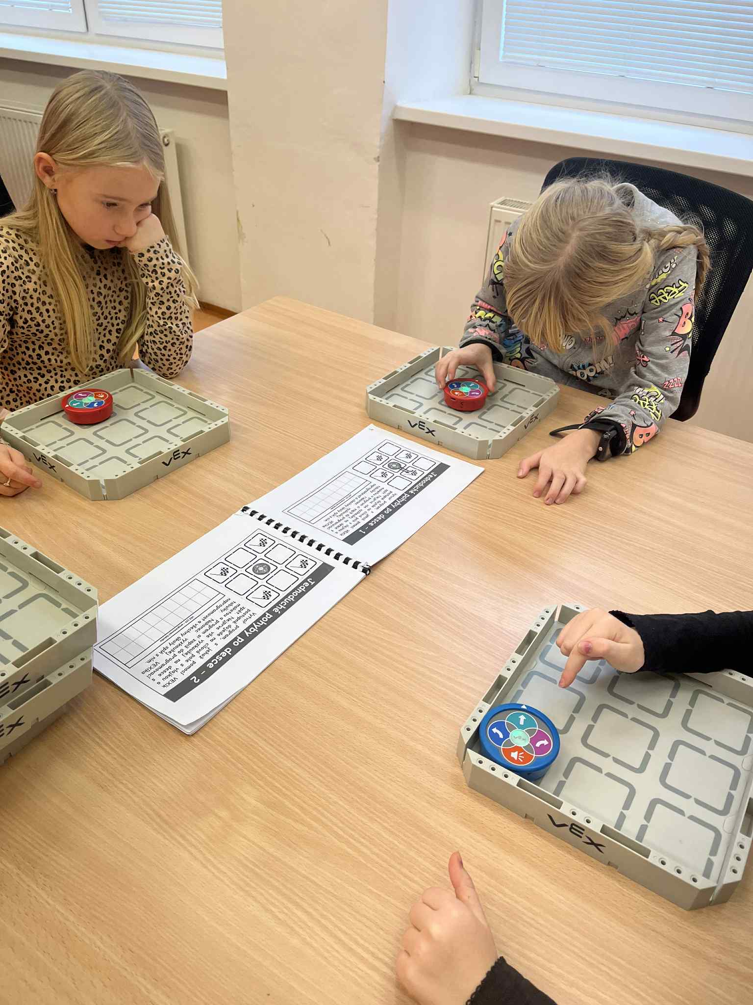 V hodinách informatiky se postupně seznamujeme s různými technologiemi, učíme se je poznávat a také jednoduchými kroky programovat. V jedné z hodin přišla na řadu práce s robůtky, které jsme se snažili přinutit jezdit po čtvercové síti podle našich pokynů. Ne vždy to šlo hladce, ale většinou se nám dařilo.