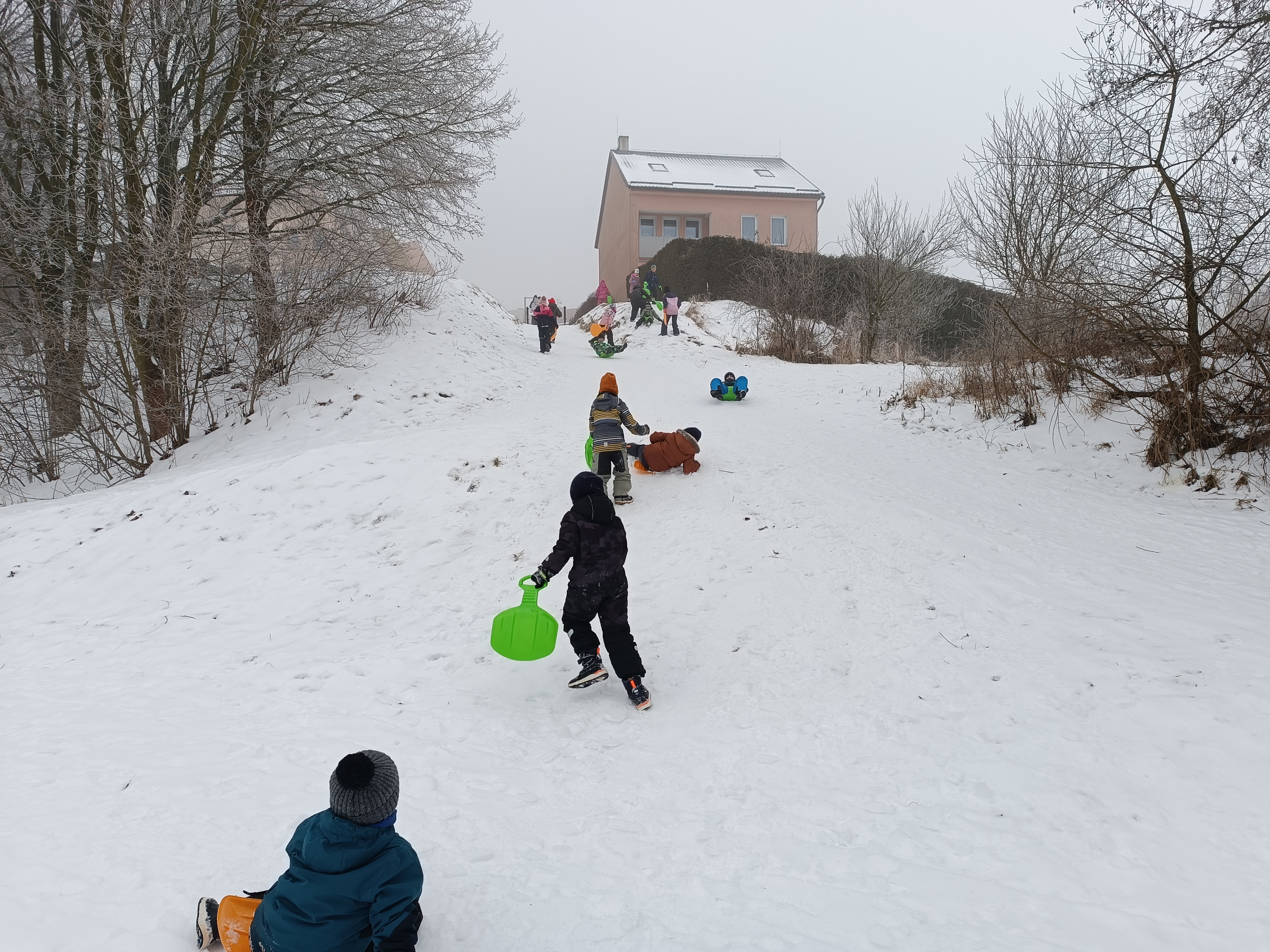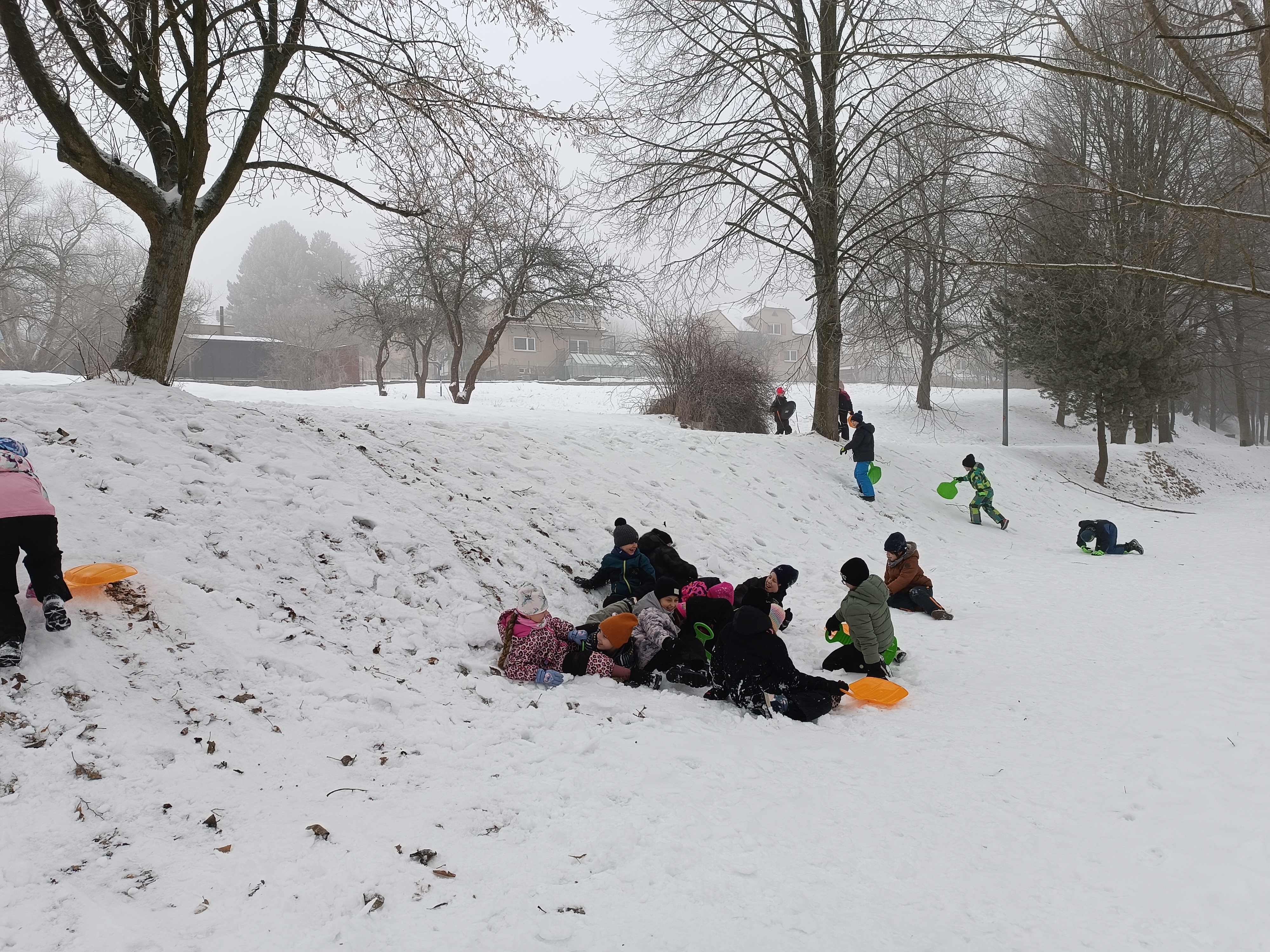 Letošní zima nás zásobila pěknou sněhovou nadílkou a tak jsme se společně vydali ven na blízké svahy. Každý zkoušel různé techniky sjezdu - bezpečně "po zadečku" či odvážněji v leže nebo ve stoje.