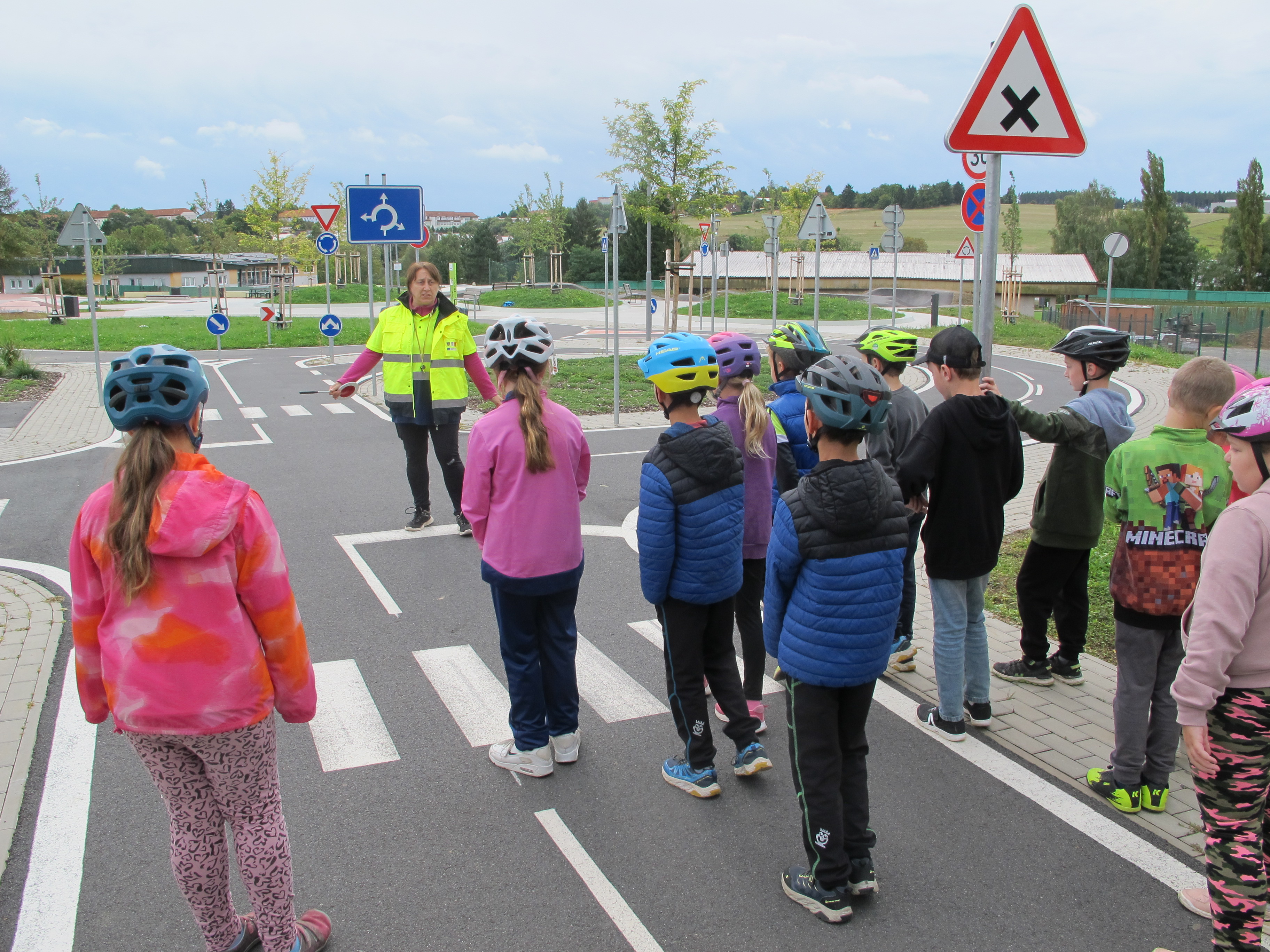 S lektorkou dopravní výchovy paní Jitkou Čechovou si žáci zopakovali správné vybavení kola. Společně prošli celý areál a určovali názvy dopravních značek. Vysvětlili si, jak se chovat na jednotlivých křižovatkách a seznámili se s pravidlem pravé ruky.