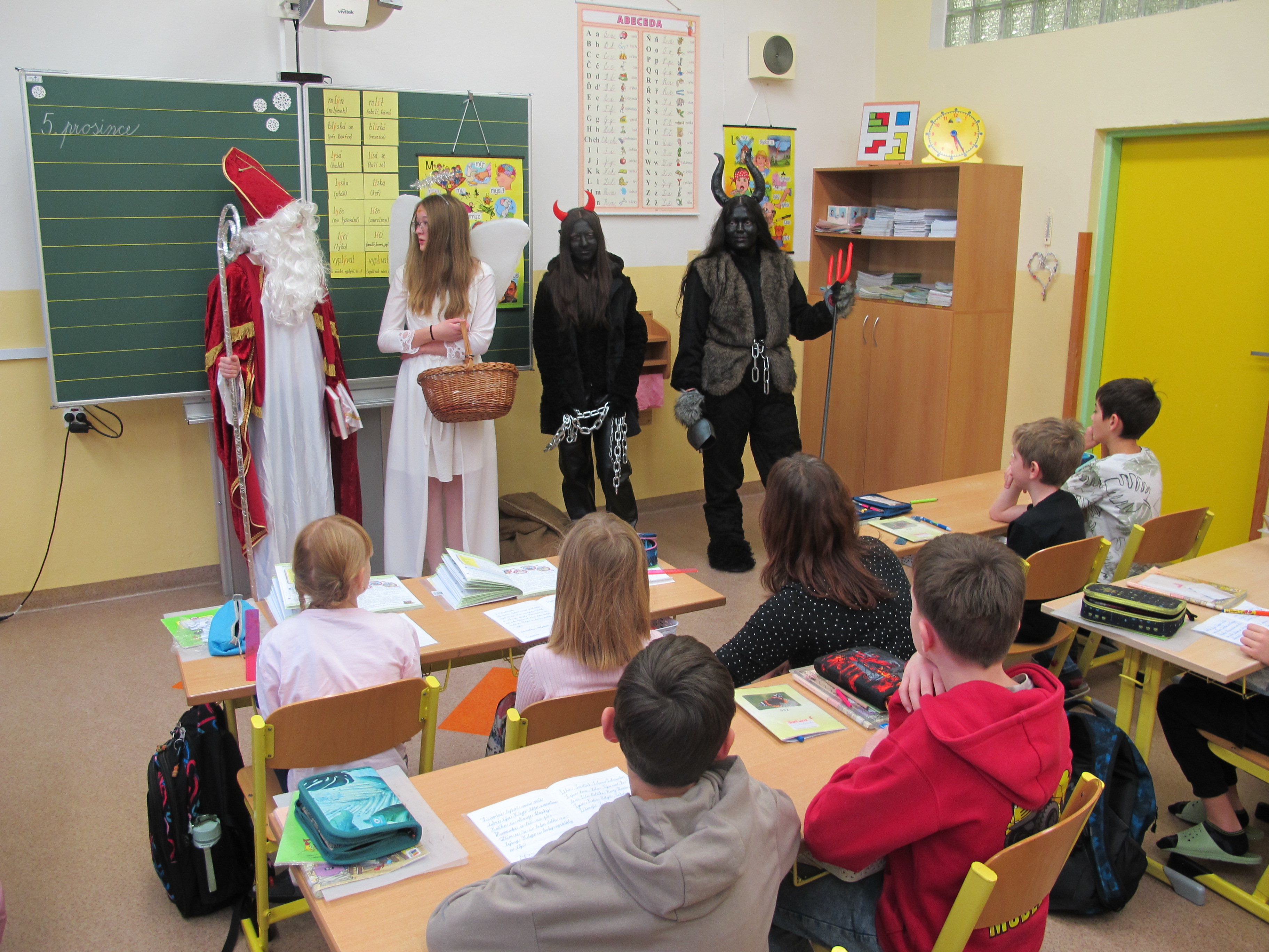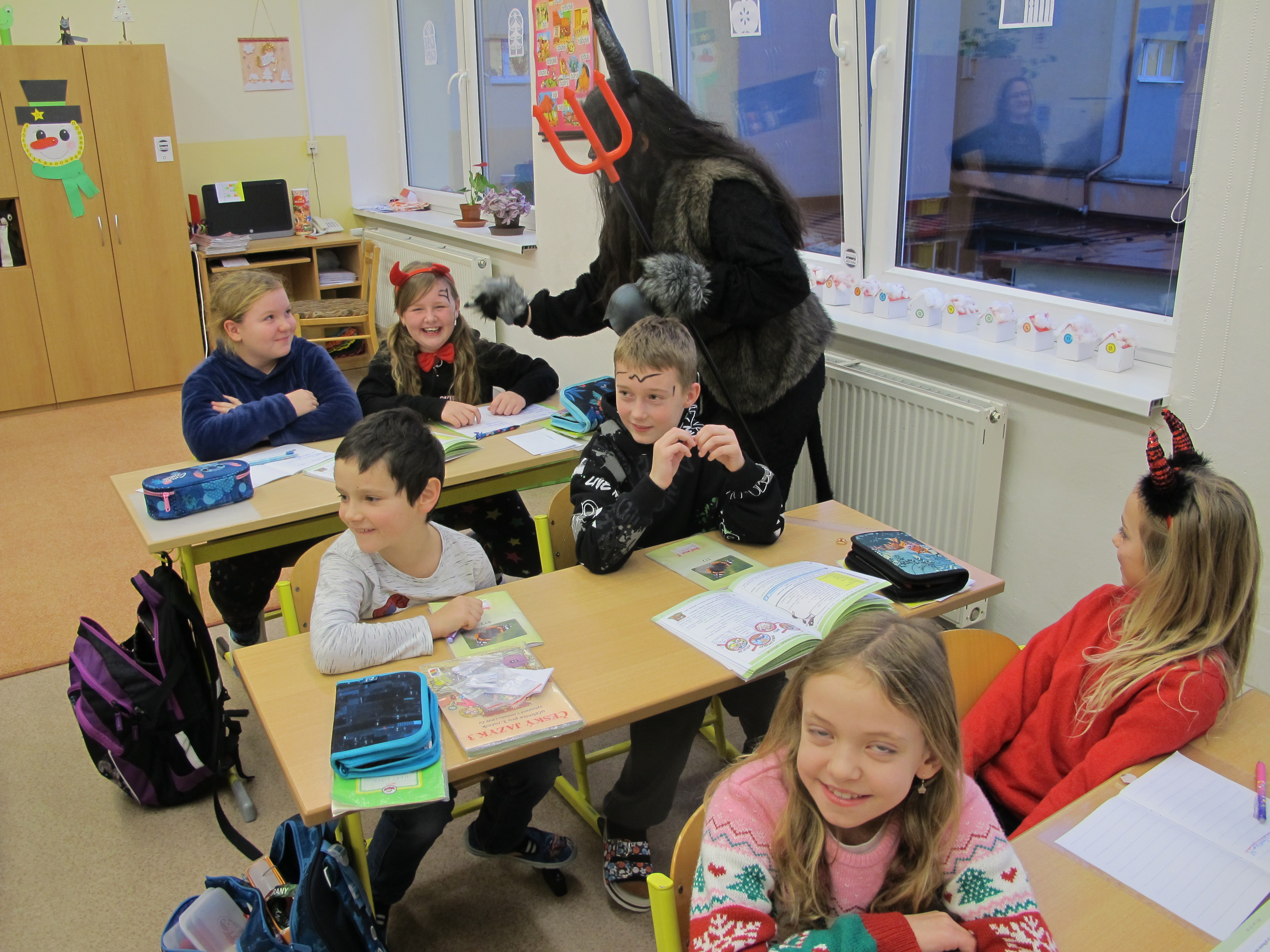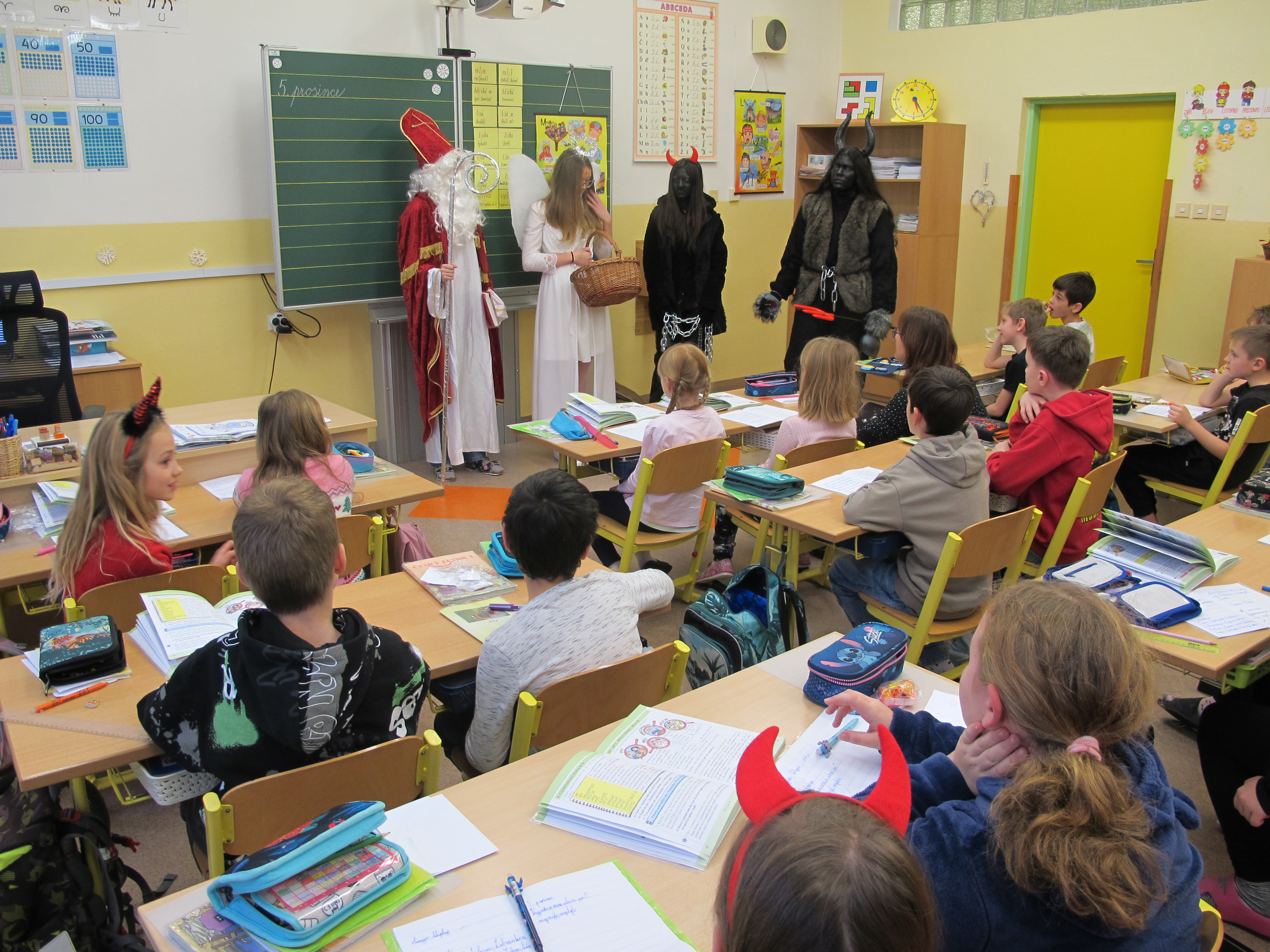 V pátek 5. prosince zavítali k nám do třídy Mikuláš, anděl a čerti. Přišli se podívat, kdo byl během školního roku hodný a kdo vystrkoval růžky.