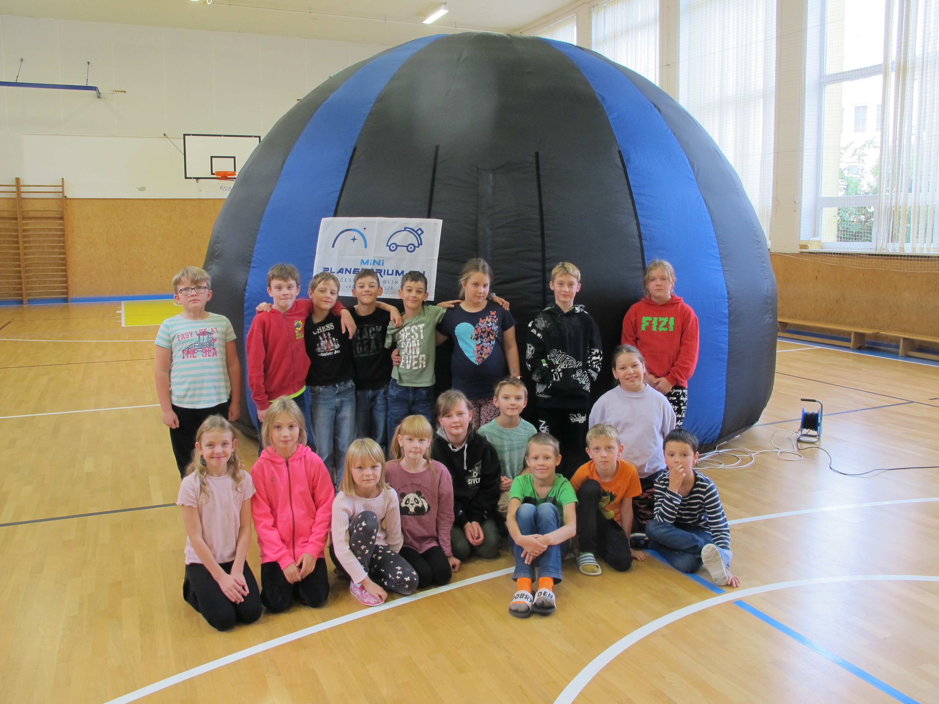 Uprostřed místnosti vyrostla nafukovací kupole. Děti se uvnitř pohodlně usadily nebo lehly. Ocitly se pod hvězdnou oblohou a během projekce s názvem Astronomie pro děti se přenesly do hlubin vesmíru. Proletěly se naší sluneční soustavou, zamířily ke všem jejím planetám, dozvěděly se mnoho zajímavého také o Slunci. Po ukončení vesmírného výletu paní lektorka s dětmi nově nabyté vědomosti zopakovala.