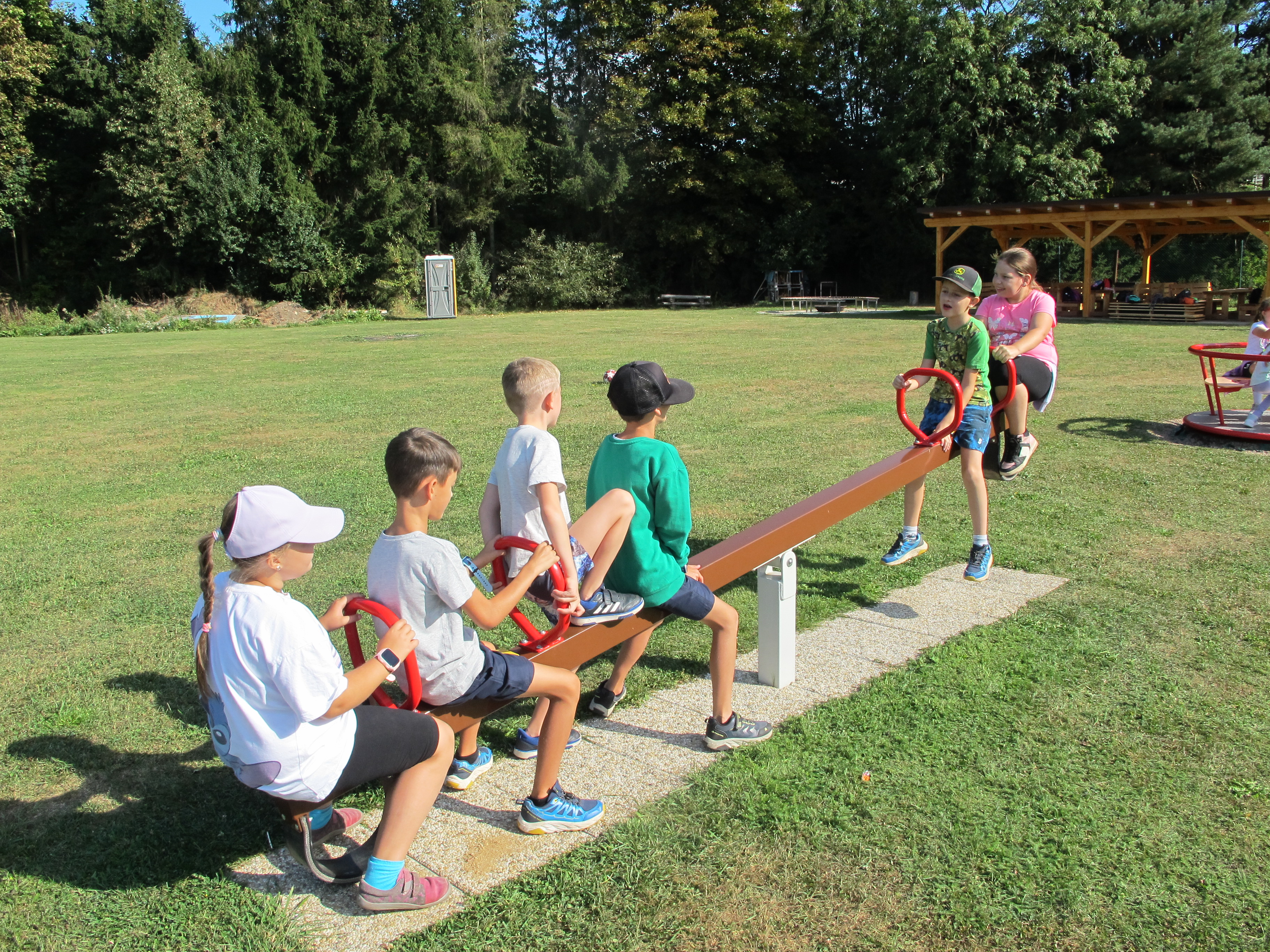 Po cestě jsme si procvičovali znalost dopravních značek, prověřili jsme dětská hřiště v Domanínku a u zimního stadionu. Zručnost a obratnost se na prolézačkách hodily.