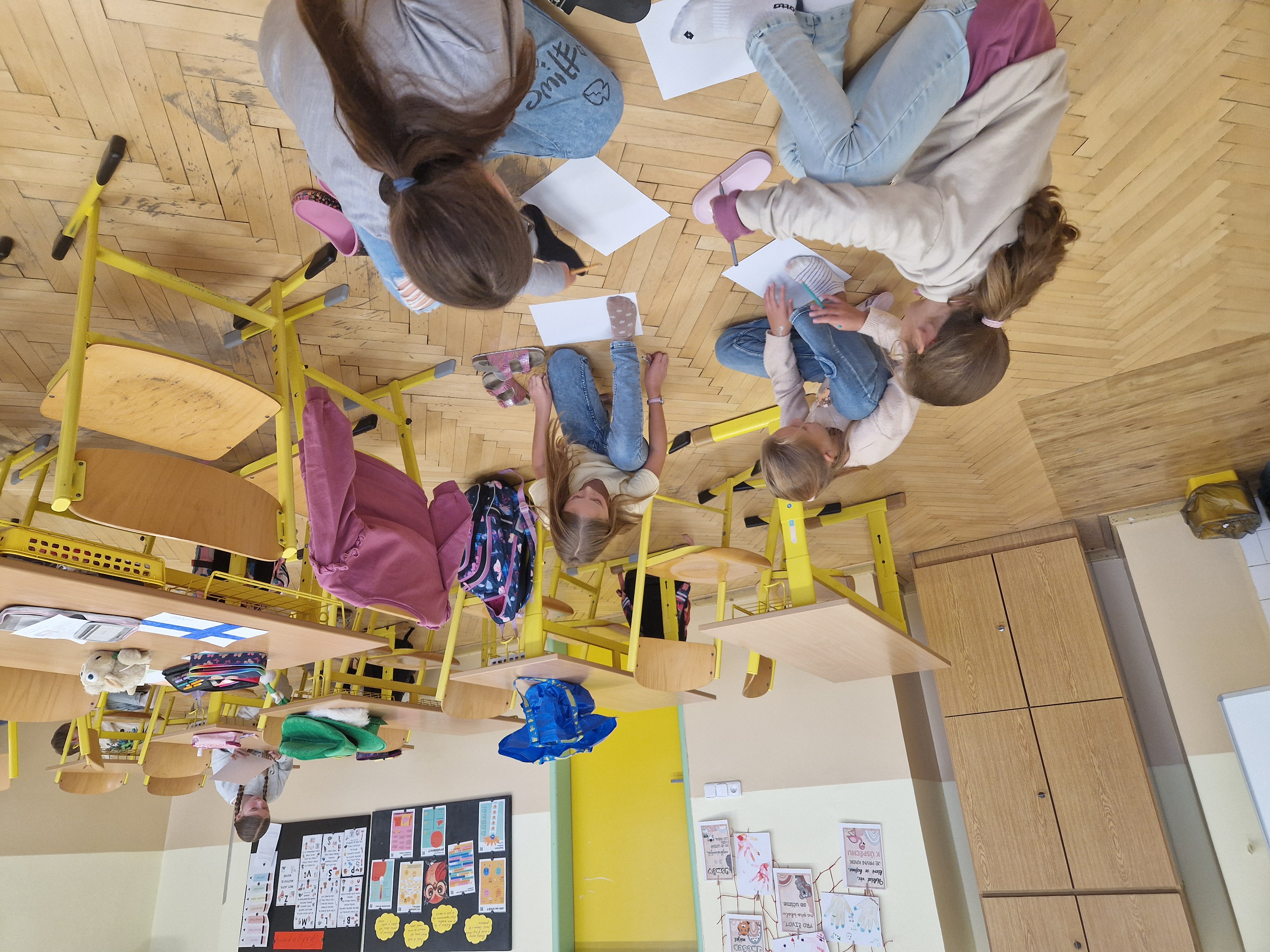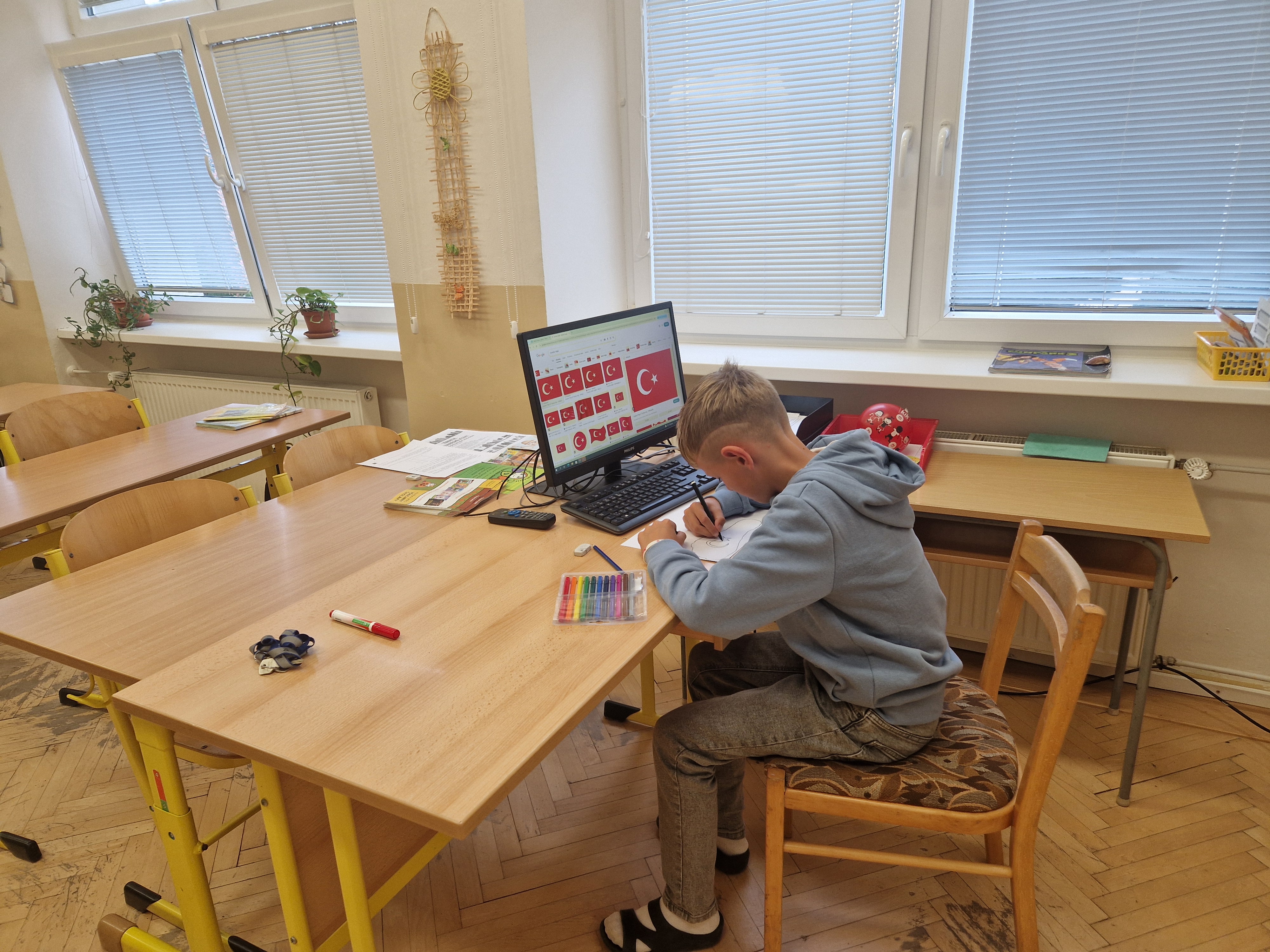 V rámci Evropského dne jazyků jsme se vydali na dlouhou cestu napříč Evropou. Vyrobili jsme si papírové stopy, které jsme vybarvili v barvách vlajek jednotlivých Evropských států a dokreslili obrázky, které jsou pro daný stát typické. V závěru dopoledne jsme vytvořili také sadu záložek se základními informacemi o zemích. Práce se dětem velice zdařila a naše autentické stopy už nyní zdobí naši třídu 5.B.
