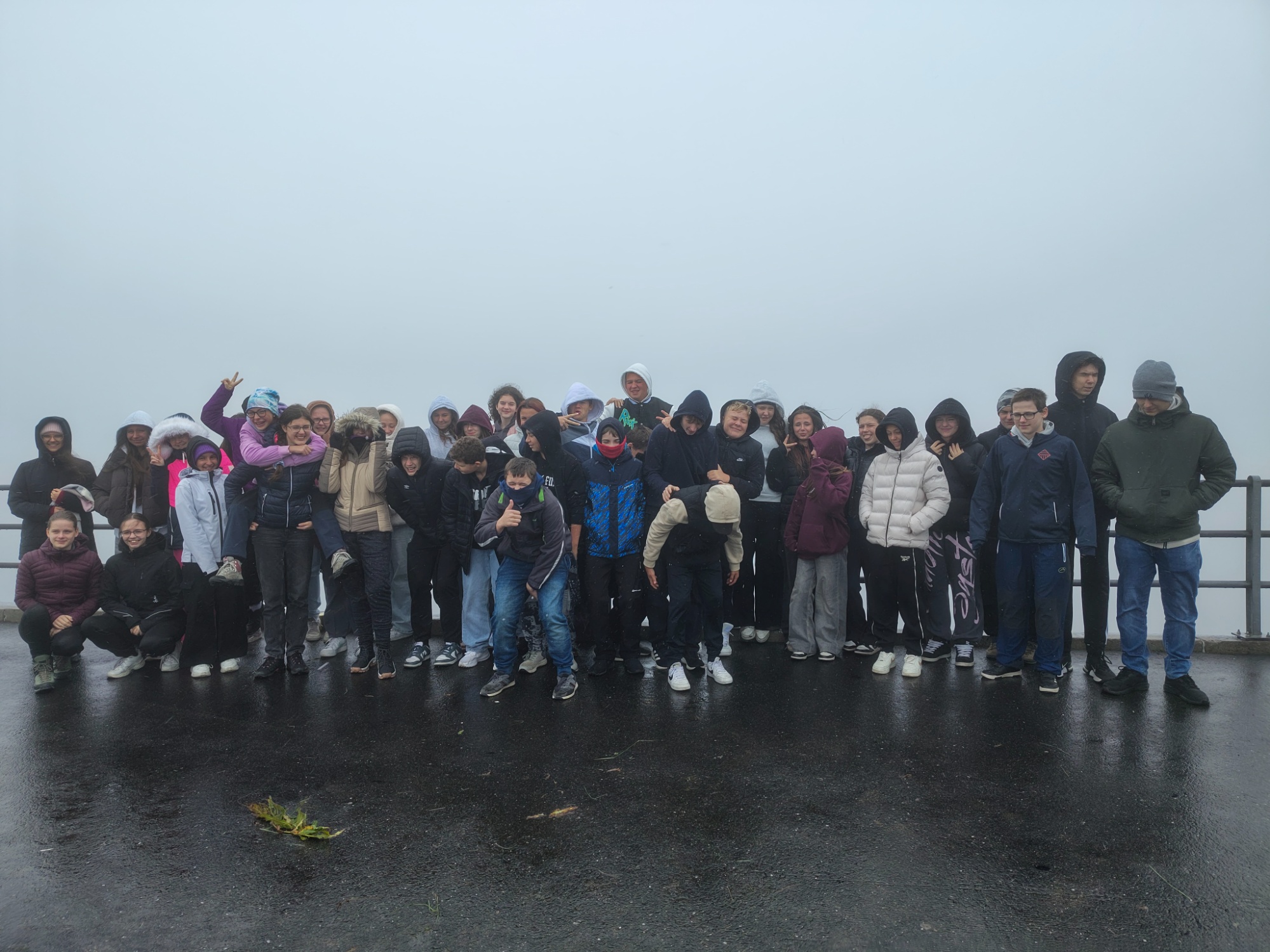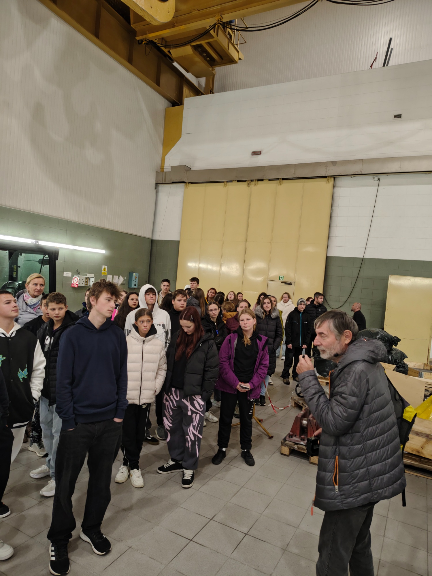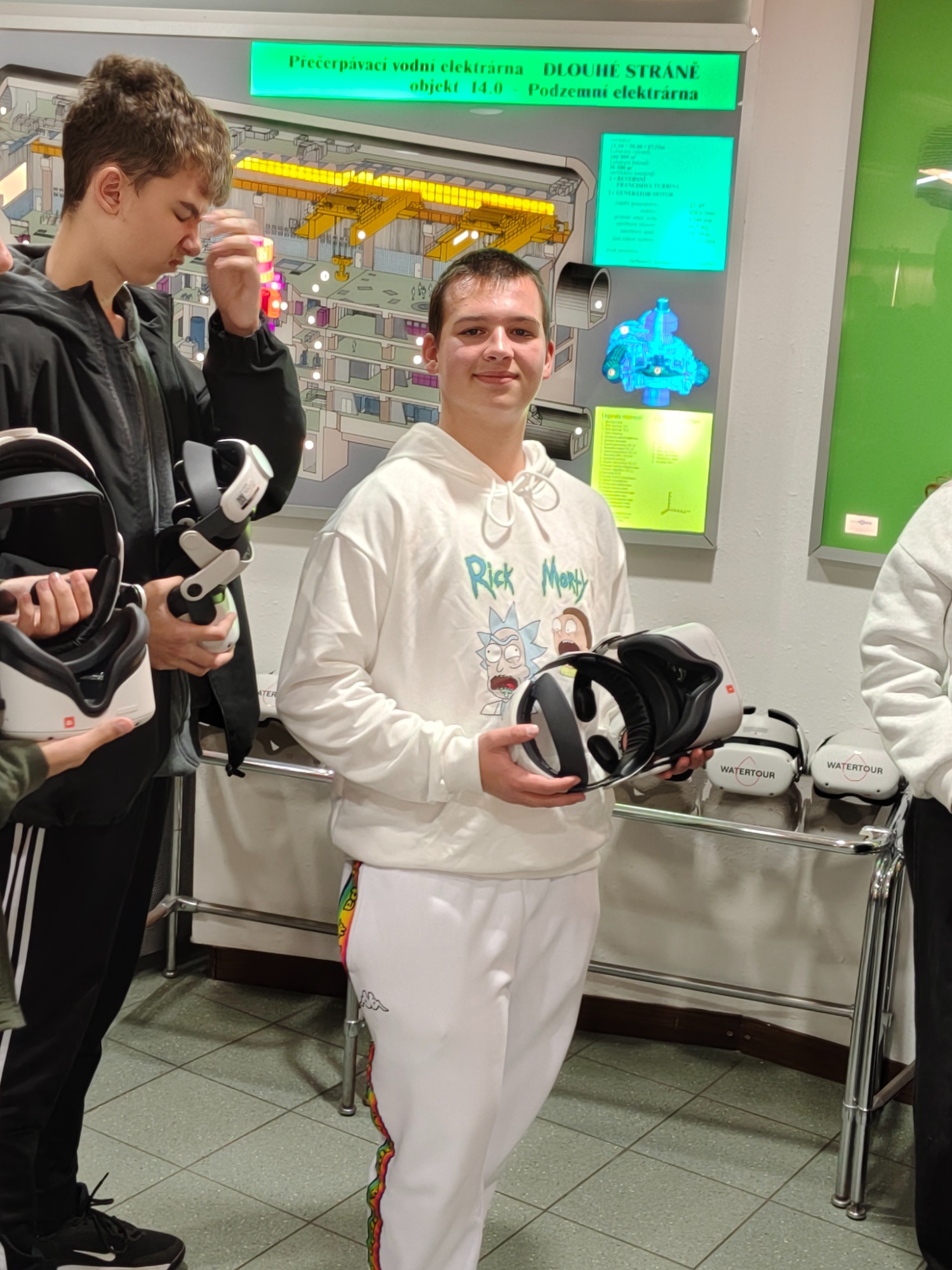 Ve středu 1.10. jsme se vydali na ročníkovou exkurzi do přečerpávací vodní elektrány Dlouhé stráně a ruční papírny Velké Losiny. S největším ohlasem se setkala virtuální prohlídka celé elektrárny, kterou nám připravila pracovnice infocentra prostřednictvím 3Dbrýlí. Mohli jsme se tak podívat do všech prostor elektrárny i prolétnout se nad oběma nádržemi. S podrobným výkladem průvodce jsme potom navštívili podzemí a kavernu elektrárny. Závěrečný zážitek z prohlídky nám však pokazilo počasí - vyjeli jsme k dolní nádrži, tam ještě byla docela slušná viditelnost, při stoupání k horní nádrži jsme si rychle uvědomili, že jsme v horách, protože začalo sněžit a silně foukat. Na hrázi horní nádrže jsme proto udělali jen rychlou společnou fotku a mohli jsme se vrátit k autobusu, hustá mlha nám totiž umožnila prohlédnou si jen okraj nádrže za zábradlím.